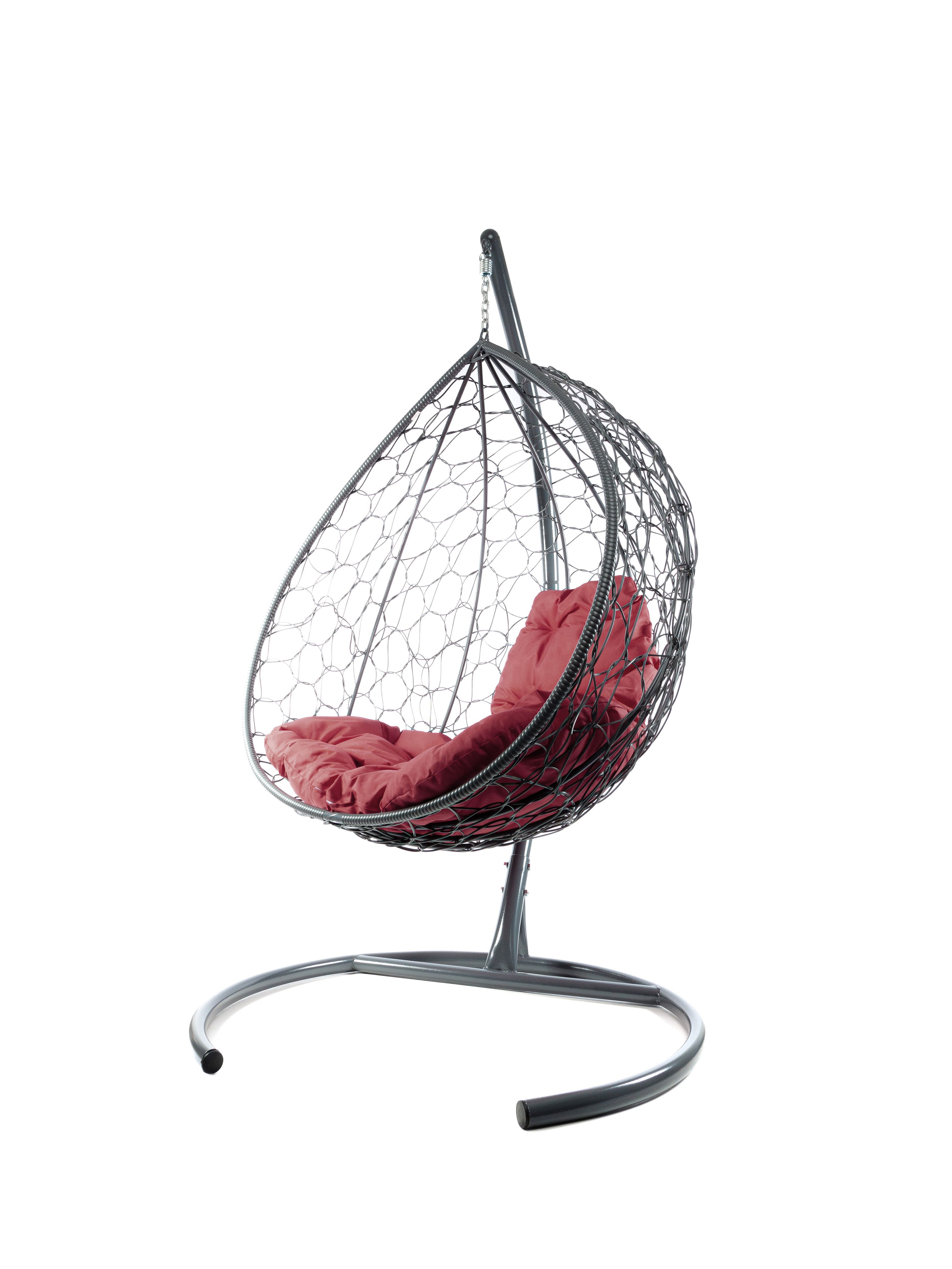 Подвесное кресло кокон, 110*78*100, снежка, серый, бордовая подушка