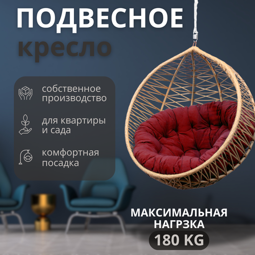 Подвесное кресло , 110*95*70, бабочка, без стойки, бежевое, бордовая подушка