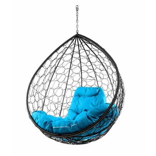 Подвесное кресло капля (без стойки), с ротангом черное, голубая подушка