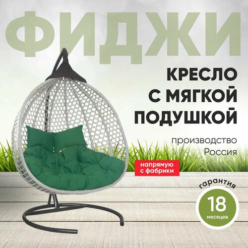 Подвесное двухместное кресло-кокон фиджи серый (зеленая подушка, полиэстер)