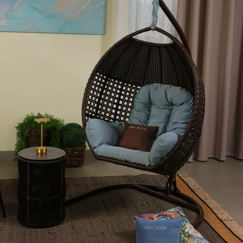 Кресло-кокон из экоротанга Авиано от Malacca, венге кожа, подушка голубая Olefin