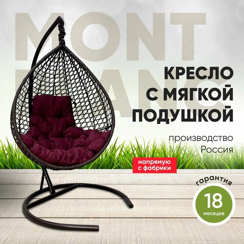 Подвесное кресло-кокон MONTBLANC COMFORT + каркас (бордовая подушка)