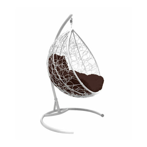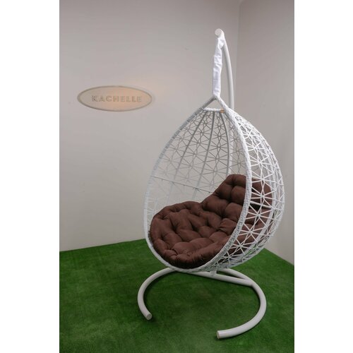 Кресло кокон Капля с ротангом, 98х186 см, до 120 кг белый/коричневый