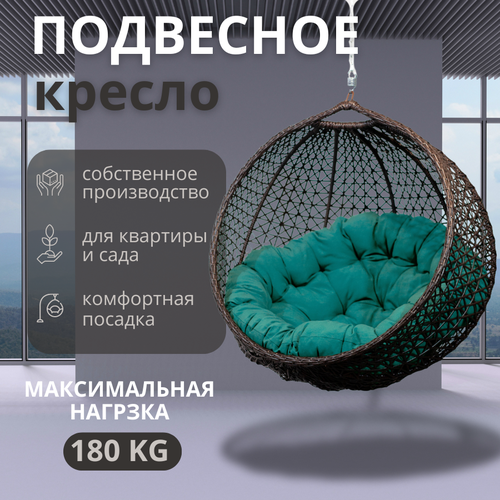 Подвесное кресло садовое, снежка без стойки, венге, бирюзовая подушка
