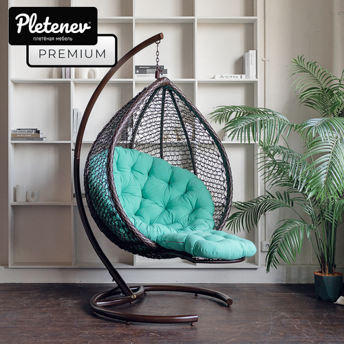 Подвесное кресло Pletenev Двухместное чёрное с Мятной подушкой