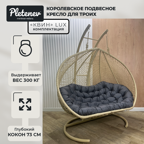 Подвесное кресло Queen трехместное Бежевое с Темно-серой водоотталкивающей подушкой
