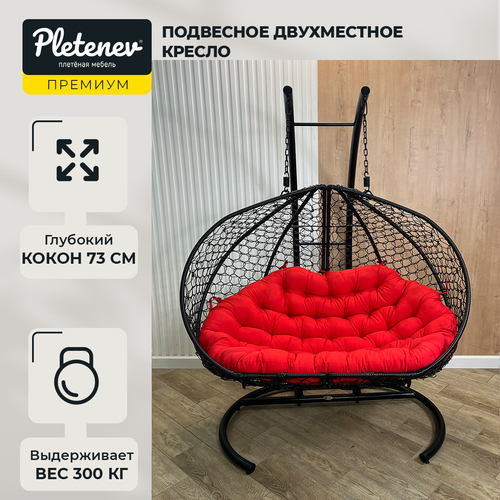 Подвесное кресло Pletenev Двухместное чёрное с Красной подушкой