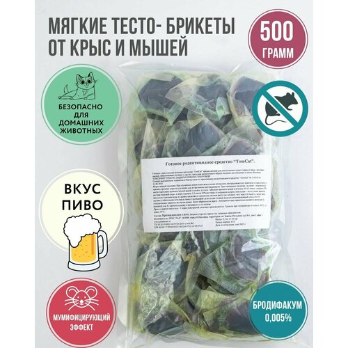Приманка от крыс и мышей ТОМ КОТ БРО тесто - брикеты от грызунов 500 грамм пиво
