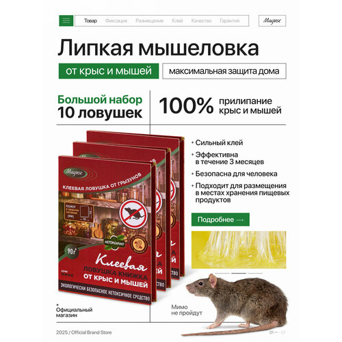Ловушка для мышей и крыс Maguse, клеевая ловушка книжка от крыс и мышей BASE, 10 шт