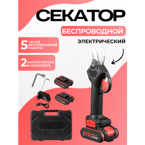 Ручной садовый секатор аккумуляторный 2 АКБ, электрический сучкорез для обрезки деревьев