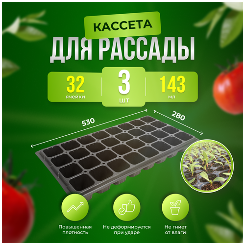Прямоугольная кассета для рассады 32 ячеек по 143 мл - 3 штуки / Ящик для рассады / Проращиватель семян