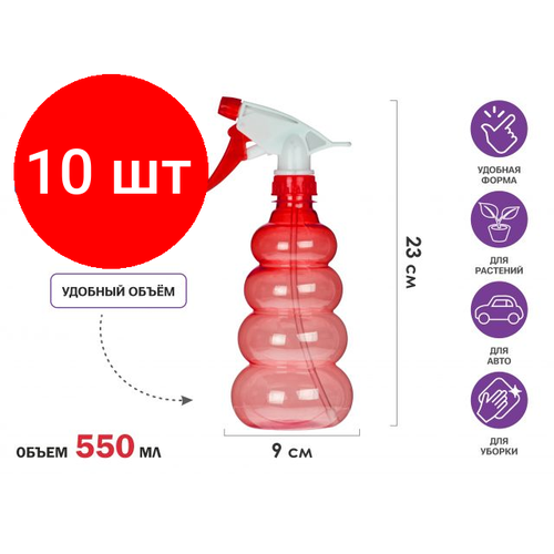 Комплект 10 штук, Опрыскиватель ручной 0.55л с пульверизатором, PERFECTO LINEA (42-260003)