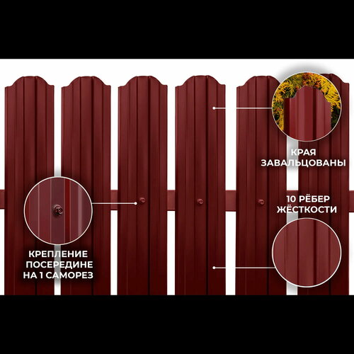 Евроштакетник (1.8 м высота) KIRBO премиум металлический RAL 3005 Винно- односторонний 0,45мм (10 шт в упк.)