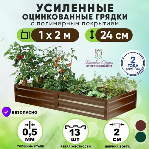 Грядки оцинкованные на дачу с полимерным покрытием усиленные 2х1 метр / ограждения металлические для растений в теплицу и открытый грунт / грядка для сада и огорода высота борта 24 см