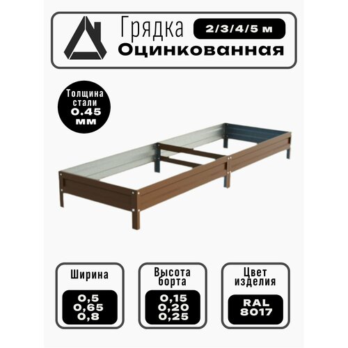 Грядка оцинкованная "Красивая грядка", с полимерным покрытием для сада и дачи , 0,8 х 2 м. ( цвет дуб антик )