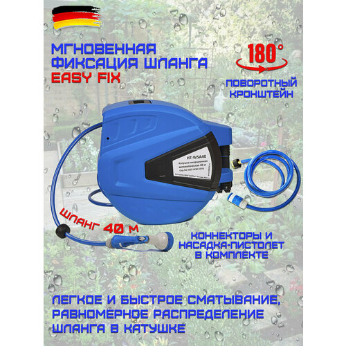Катушка инерционная автоматическая со шлангом HAITEC HT-WSA40, 40м