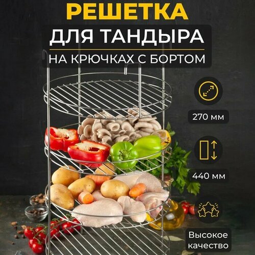Решетка 4-х ярусная на крестовину тандыра с бортом, диаметр 27 см, 4 крючка, сталь 3 мм 10328432