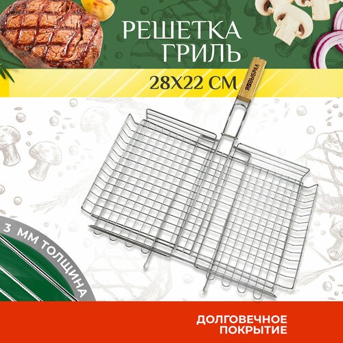 Решетка-гриль Я Выбрал средняя универсальная с деревянной ручкой 32 х 22см