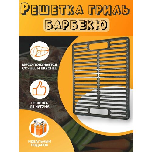 Решетка-гриль выполнена из экологически чистого и безопасного металла - чугуна и предназначена для приготовления блюд барбекю. Решетка имеет компактный размер: 358х198х9мм и небольшую массу - 2 кг. Чугунные изделия обладают естественными антипригарными свойствами. За счет низкой теплопроводности и высокой теплоемкости изделие равномерно прогревается по всей поверхности и долго сохраняет тепло. Перед первым использованием решетки необходимо: 1) вымыть изделие в теплой воде мягкой губкой с применением жидкого моющего средства 2) вытереть изделие насухо 3) нагреть решетку для удаления остатков влаги 4) смазать поверхность изделия растительным маслом (лучше всего использовать льняное) и дать остыть. Использование и уход: Чугунную решетку мыть не обязательно. После каждого использования нужно удалить с поверхности пригоревшие остатки пищи. Перед следующим использованием, после нагрева решетки ее поверхность просто нужно протереть жесткой щеткой, после чего смазать растительным маслом.