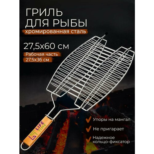 Решетка - гриль для 2 рыб LIFE TIME с деревянной ручкой и антипригарным покрытием