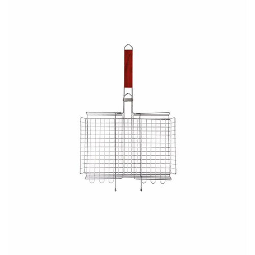 Решетка - гриль объемная большая из нержавеющей стали, FORESTER BQ-N03P 26x38см с ручками из красного дерева