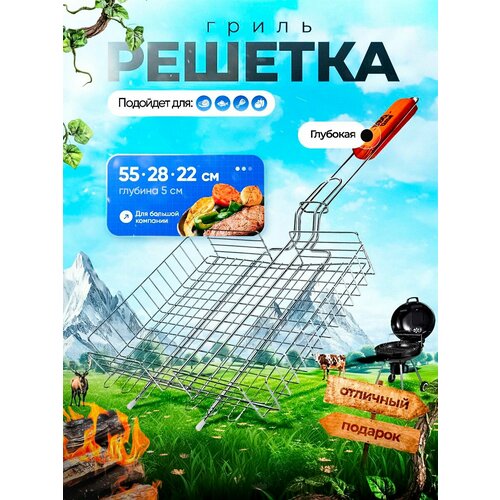 Решетка для мангала глубокая решетка гриль на мангал 28х22 см