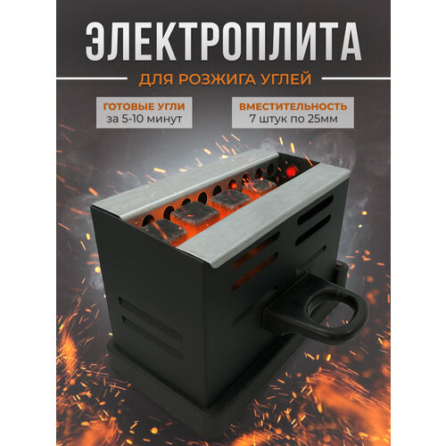 Плита электрическая для розжига углей, для угля 22мм, 25мм, с ручкой, чёрная 1000w