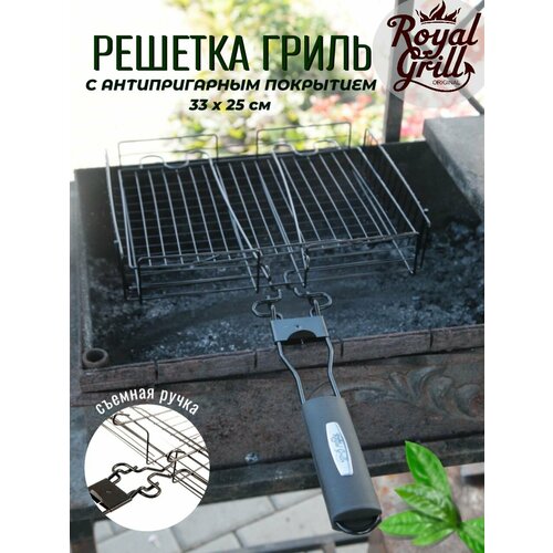 Решетка гриль для мангала ROYALGRILL. 31х33 см с антипригарным покрытием со съемной ручкой