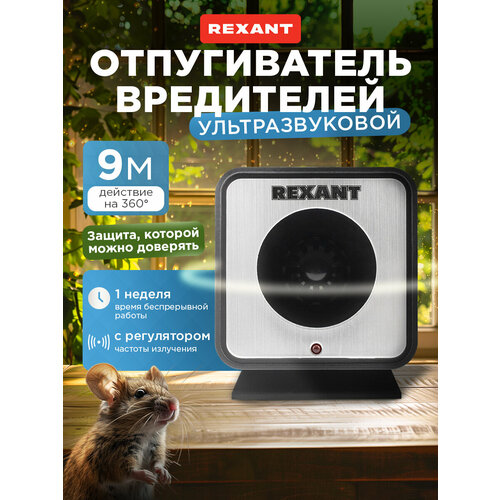 Ультразвуковой отпугиватель REXANT 71-0009 (60 кв.м.) черный/серебристый 1 шт.
