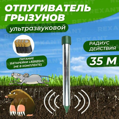 Ультразвуковой отпугиватель REXANT Отпугиватель кротов ультразвуковой REXANT R30 (71-0007) (30 кв.м.) 1 шт.
