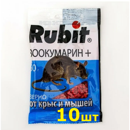 Упаковка 10шт Приманка Зерно от крыс и мышей 50 г Зоокумарин+ Rubit