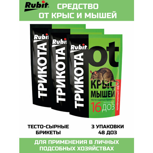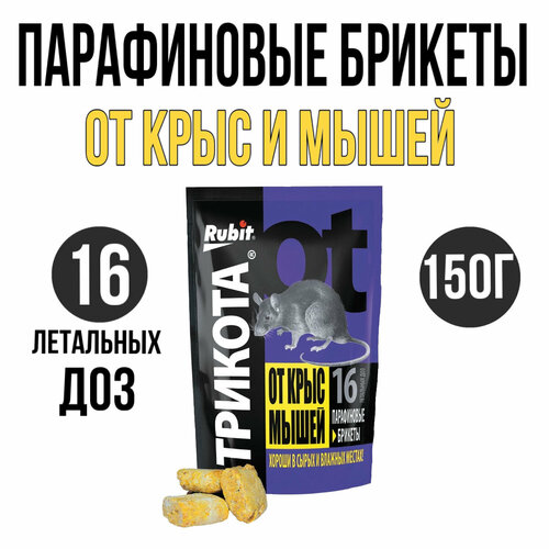 Средство против грызунов крыс и мышей Rubit ТриКота парафиновые брикеты 16 доз Рубит трикота