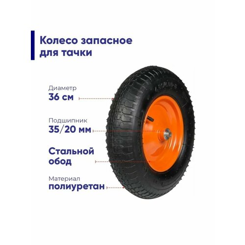 Колесо запасное для тачки диаметр 360 мм, подшипник 35/20 мм, пневматическое с камерой