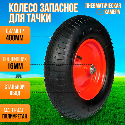 Колесо запасное для тачки W16-400/8(16), Диаметр колеса 400 мм, пневматическое с камерой