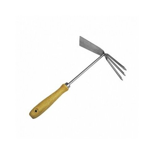 Мотыжка Урожайная сотка 40294 комбинированная 3-х зубые грабли с лопаткой с деревянным черенком