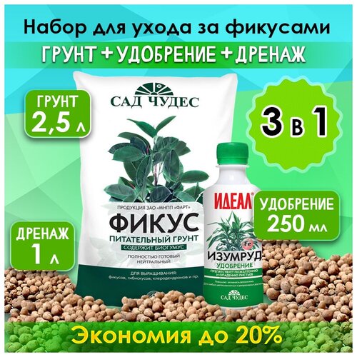 Сад Чудес / Грунт питательный для фикусов (почва, земля), удобрение, дренаж (керамзит) для комнатных растений