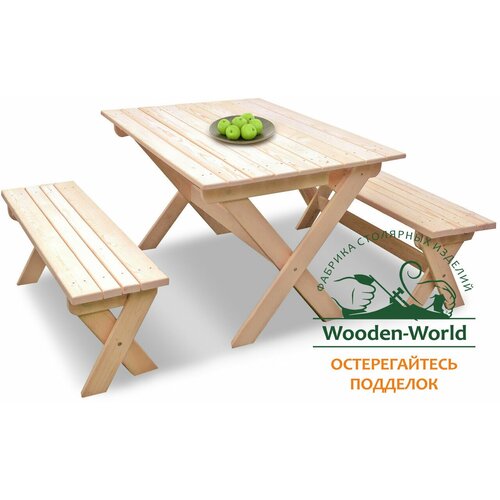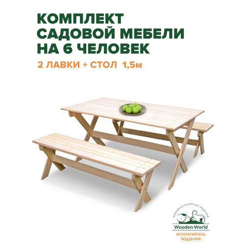 Набор мебели из дерева без окраски, стол и две лавки, массив сосны, для бани, дачи, беседки