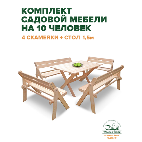 Комплект садовой мебели "на 8-10 человек" складной деревянный (Стол, 4 Скамейки)