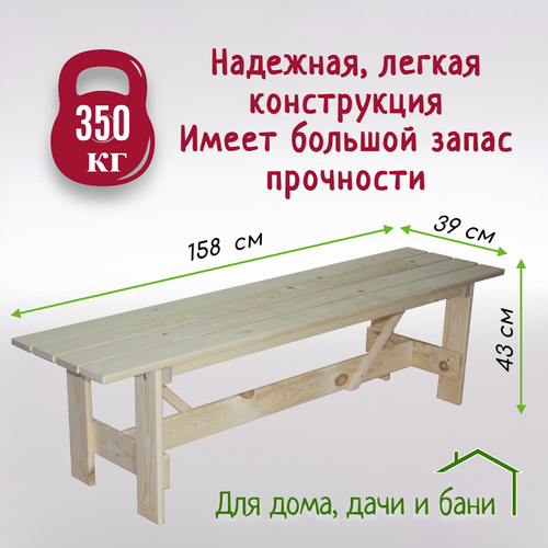 Лавка садовая, массив дерева, скамейка садовая, для бани, 158х39х43 см, Банный Мастер