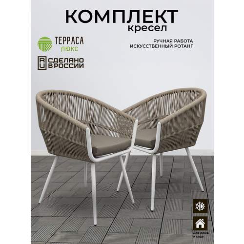 Комплект из 2-х садовых кресел Рица, искусственный ротанг, металлический каркас, бежево-белое, максимальная нагрузка 120кг