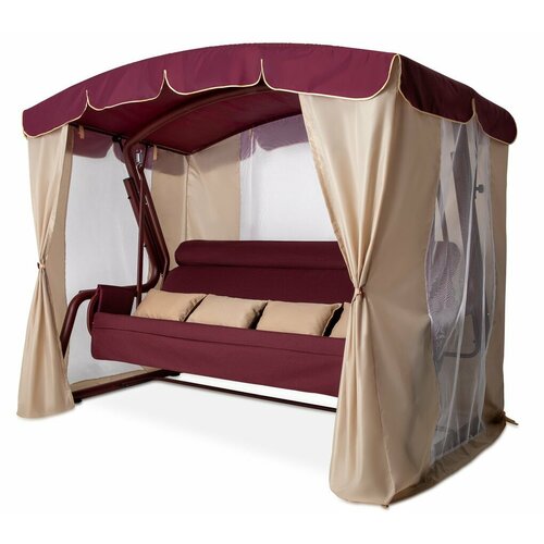 Уличные садовые качели дефа люси люкс бордо для дачи четырехместные подвесные с тентом и москитной сеткой