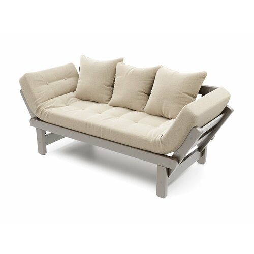 Садовый диван кушетка Soft Element Эльф-С, бежевый-серый, из дерева, раскладной, подушки, рогожка, на террасу, на веранду, для дачи и сада, для бани