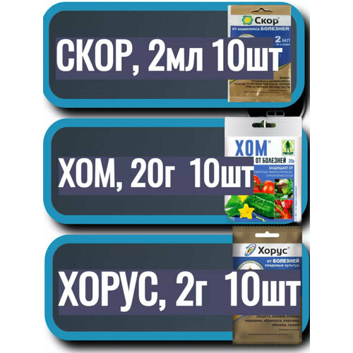 Комлексная защита растений сада и огорода Хорус, Скор и Хом по 10 шт
