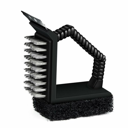 Щётка металлическая для чистки гриля и мангала с жёсткой губкой и скребком / Щетка по металлу 3в1