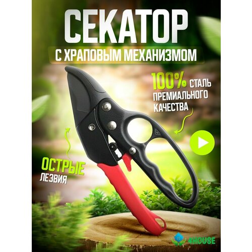 Секатор садовый, сталь SK5 , загнутые лезвия, храповый механизм