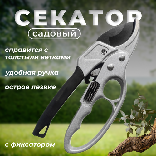Секатор сучкорез садовый для веток и кустов, с фиксатором, черный
