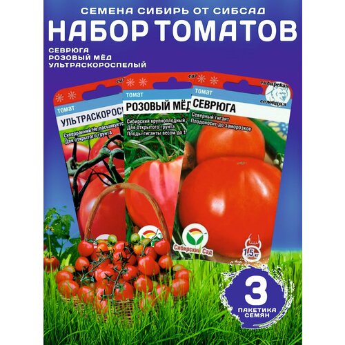 Набор семян томатов Сибирь, 3 шт ( Ультраскороспелый, Севрюга, Розовый мед)