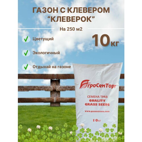 Газон с клевером "КлеверОК", 10 кг / Семена газонной травы / Травосмесь