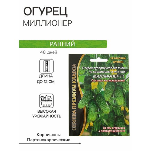 Семена Огурец "Миллионер" F1 раннеспелый, урожайный, партенокарпический, 7 шт