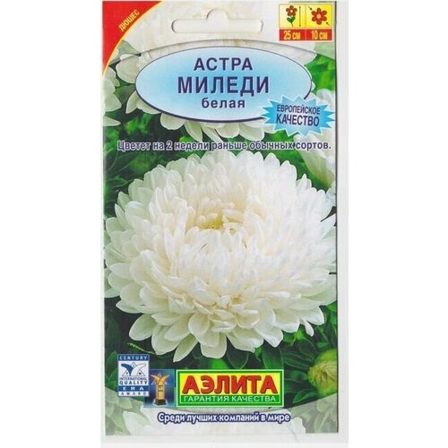 Семена астры Агрофирма Аэлита "Миледи белая", однолетние, высота 25см, диаметр цветка 10см